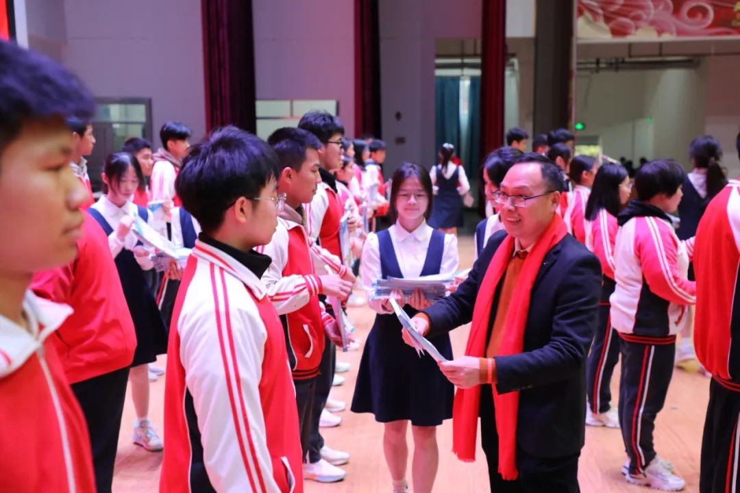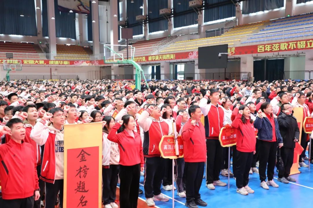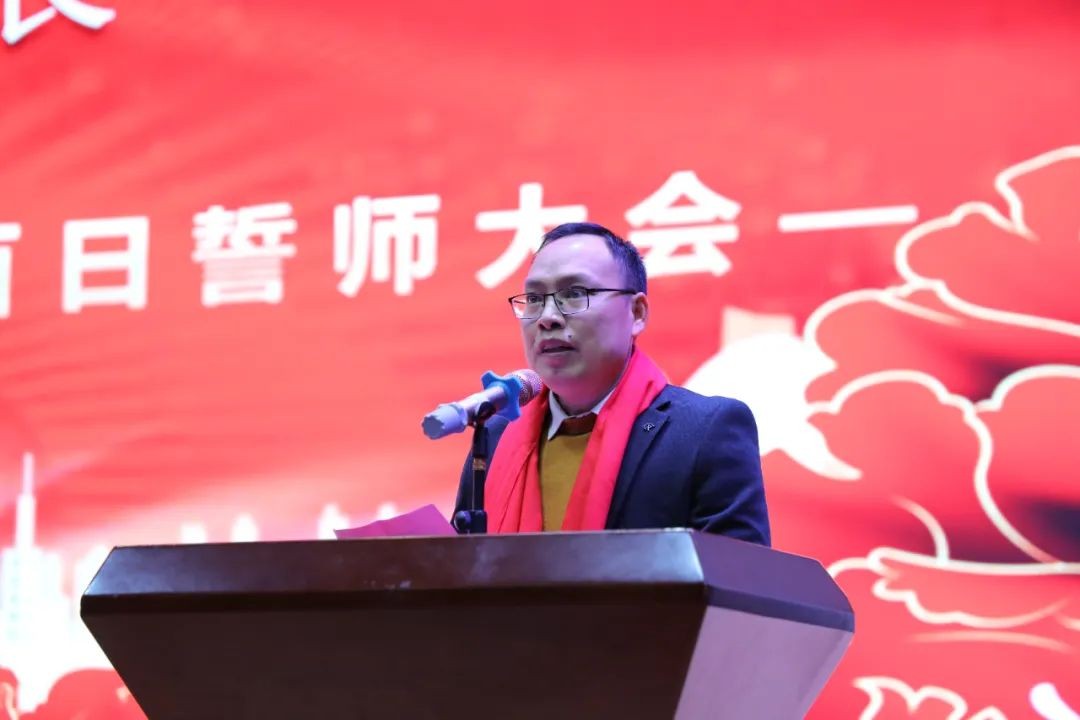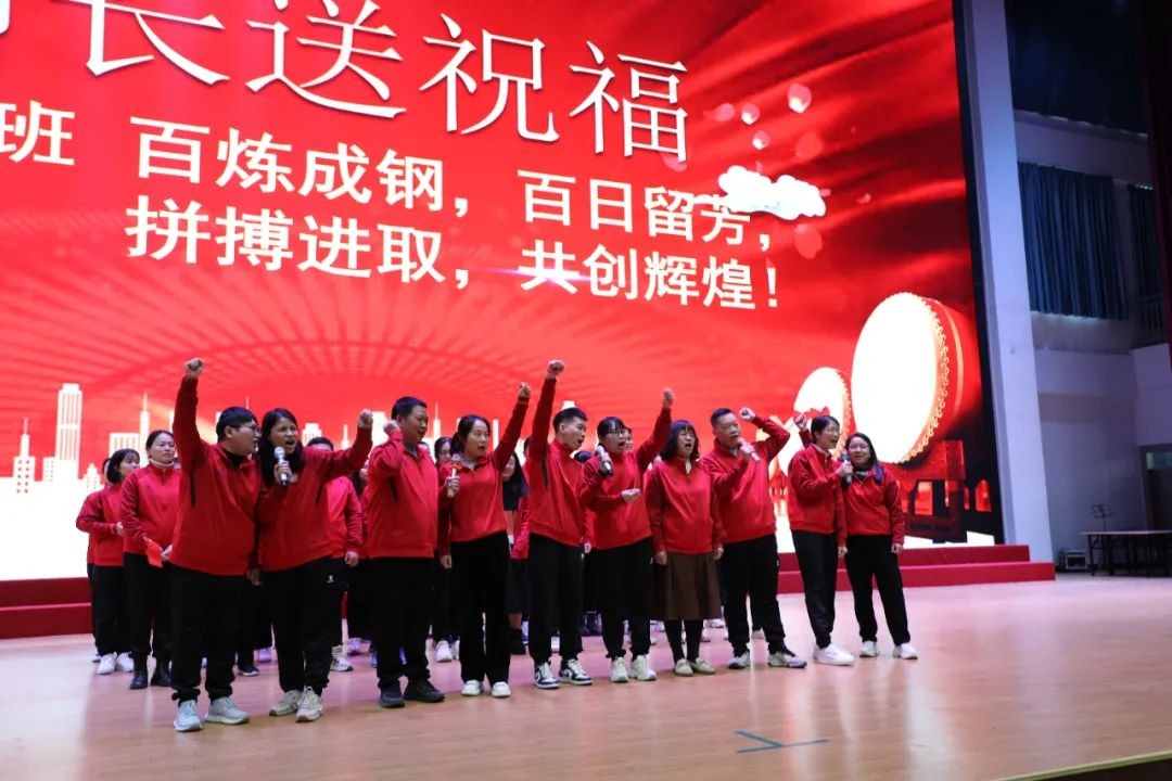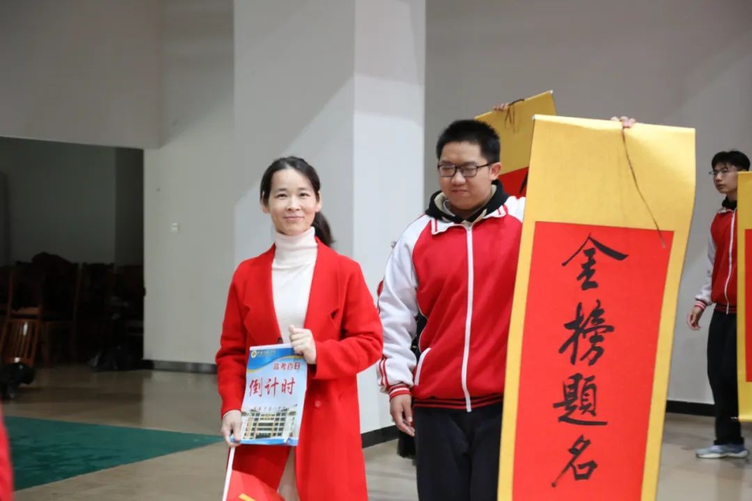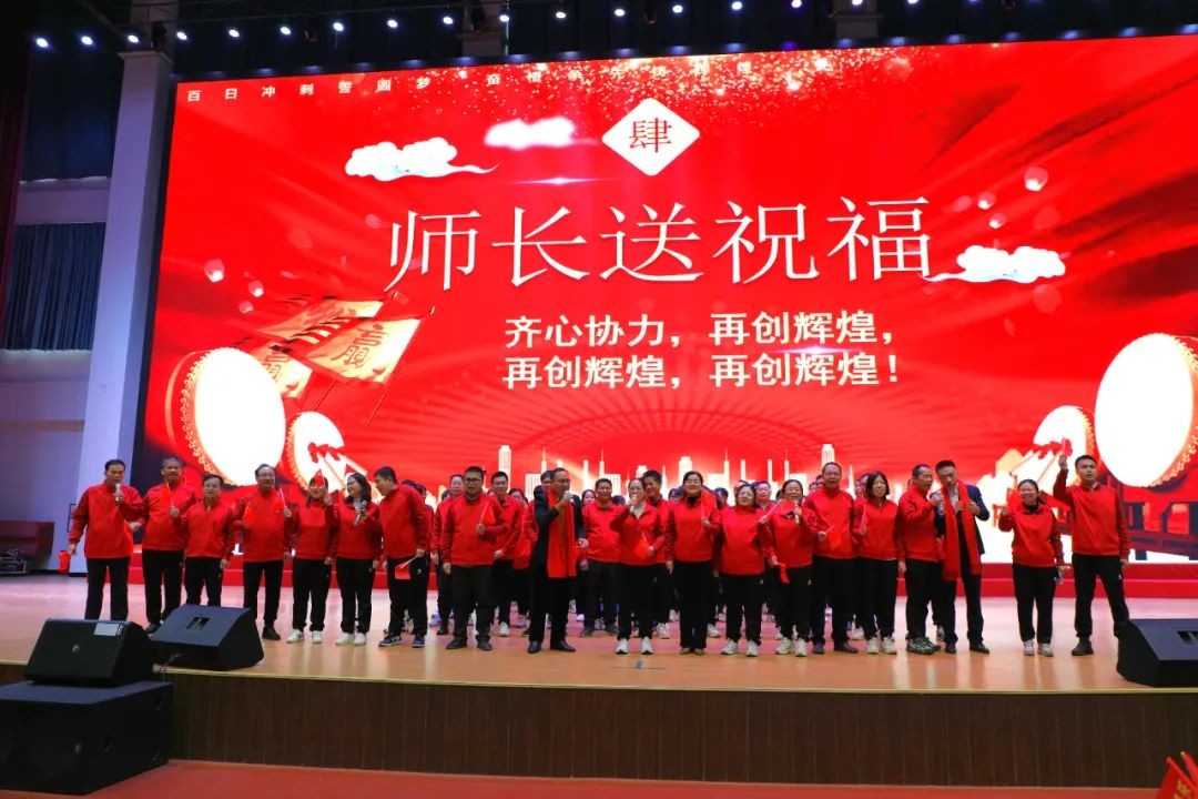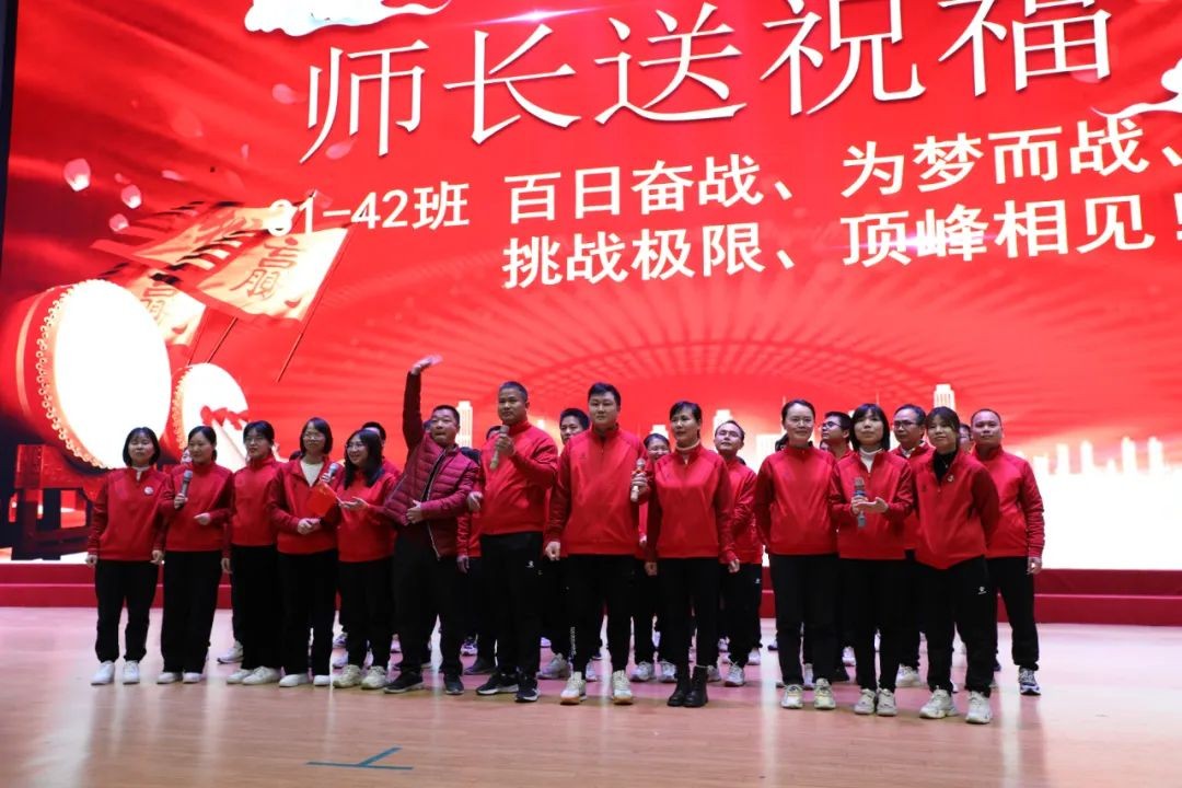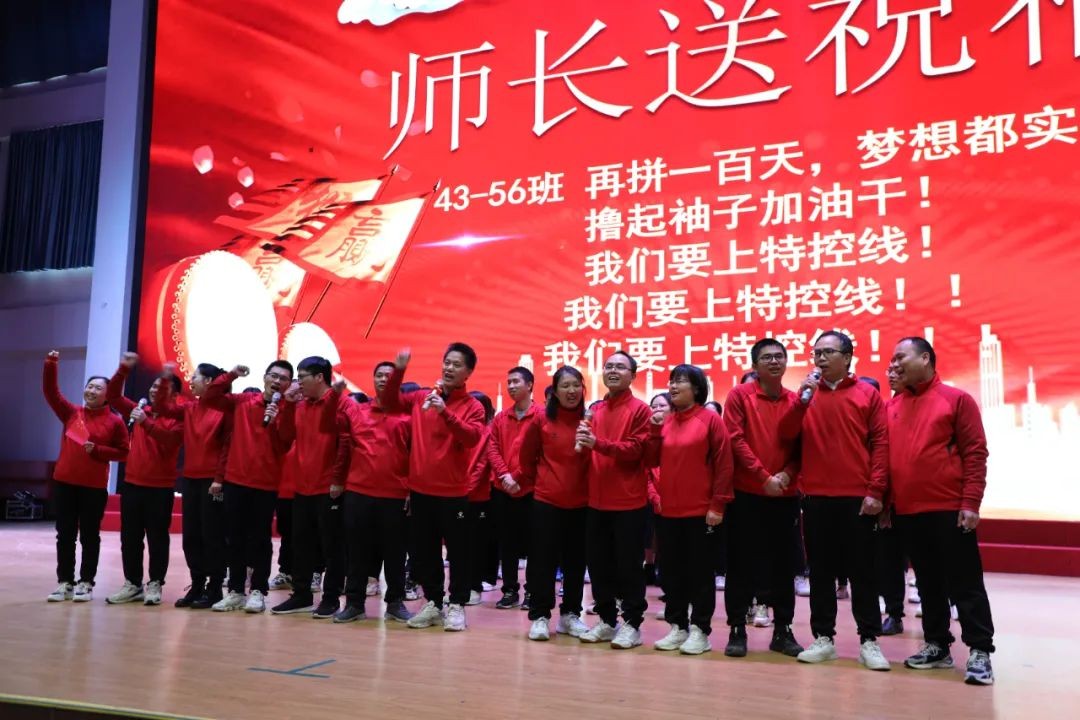 接着,高三年级全体校务委员和班主任作为教师代表深情寄语,向学子们送上真诚的祝福。殷殷嘱托,满怀关爱;铿锵教诲,动人心魄。“百日冲刺,奋楫争先,齐心协力,再创辉煌,再创辉煌,再创辉煌!”呐喊而出的铮铮誓言,道出了老师们为学生高考保驾护航的坚定决心。
