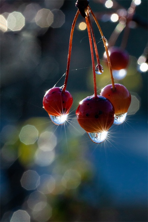 11月1日,在山东省淄博市高青县,成熟的果实挂着露珠。 新华社发(张维堂摄)
