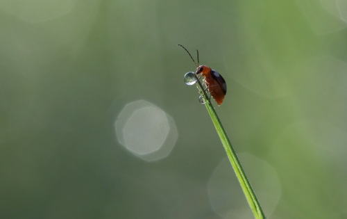10月30日,在云南省景洪市,昆虫爬上草尖。 新华社发(李云生摄)