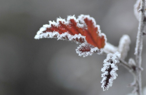 11月2日,在云南省迪庆藏族自治州香格里拉市建塘镇,植物叶子上结了一层霜。 新华社发(余富全摄)
