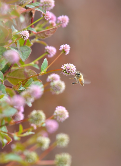 10月29日,在湖北省宣恩县,蜜蜂在花间飞舞。 新华社发(宋文摄)
