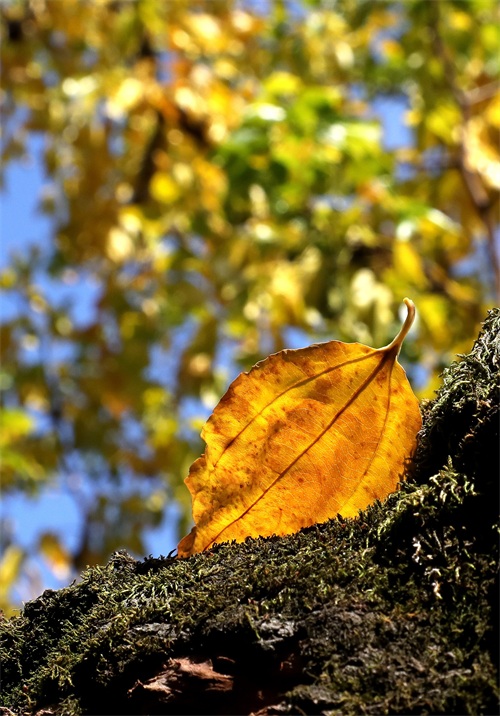 10月31日,在江苏苏州怡园内,一片黄叶飘落在树干上。 新华社发(杭兴微摄)