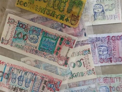 大约在10年前,李国色从父亲手中接过面店生意的那天,父亲就叮嘱他,有一位智力残疾的孤寡老人会经常拿手绘“纸币”来买面,一定要收下他画的“纸币”,把面条卖给他。直到第一次看到老人从口袋中拿出花花绿绿的“纸币”,李国色才恍然大悟。