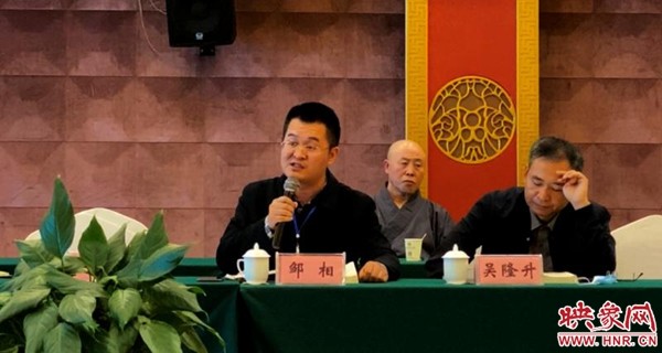 当天下午五点半,为期两天的“少林学”学术研讨会在禅武大酒店六楼会议室圆满闭幕。出席闭幕式的嘉宾主要有:中国佛教协会副会长、河南省佛教协会会长、少林寺方丈释永信大和尚,河南省民政厅原厅长孙培新,中国社会科学院世界宗教研究所教授黄夏年,中共中央党校督学组教授乔清举,全国档案领军人才丁海斌等。少林寺藏经阁藏主延个法师担任闭幕式主持人。