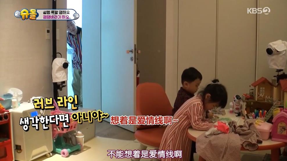 现在看来综艺里的loveline多少都是有剧本的!想到姜gary对儿子姜好说的话:“综艺里的loveline是没有结果的”。在《超人回来了》中姜gary带着小好去jamjam家做客,因为两个孩子是同龄的亲故,所以很快就玩到了一起。