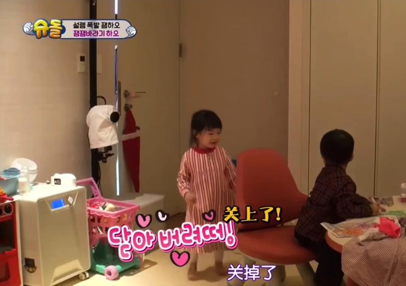 小好跟着jamjam玩,完全不理会爸爸姜gary。两个孩子在一起玩画画,杵在中间的“狗哥”姜gary显得非常的多余,惹的小好叫爸爸去洗碗。