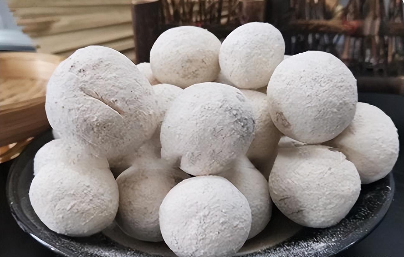 将准备好的所有原材料晒干,大米和干辣蓼草的比例为13:1,其他材料占比为辣蓼草的二十分之一,所有材料一起粉碎混合,加水搅拌均匀,水的多少以粉末刚好能成团为准,然后将它们用力捏成小团,滚上一层老酒曲粉。