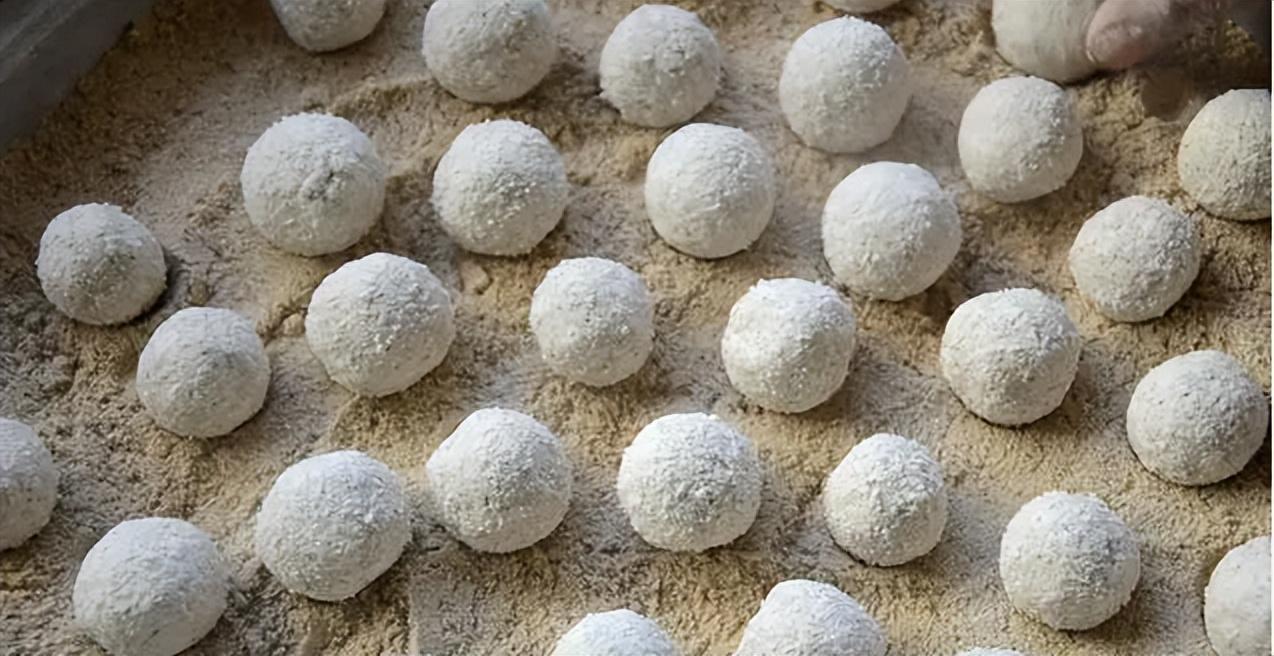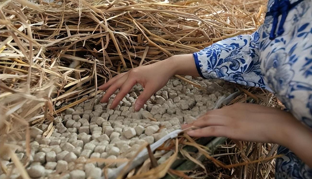 将面团分成鹌鹑蛋大小的曲坯,准备一个温度在20℃以下的房间,在地上铺上稻草,稻草上放曲坯,一层稻草一层曲坯,然后将房间封闭,让曲坯发酵两天。