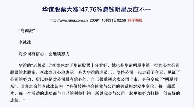 2007年,在华谊兄弟上市前夕,李冰冰以每股0.53元的价格认购了36万的股份。两年后,华谊上市,股价翻了近170倍,李冰冰身价随之暴涨,初次尝到了投资的甜头。