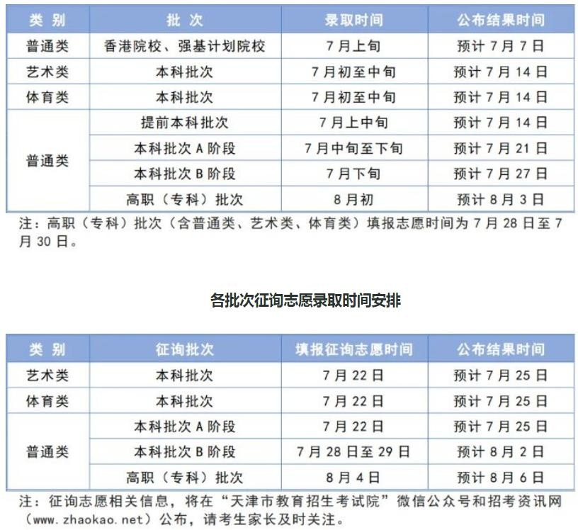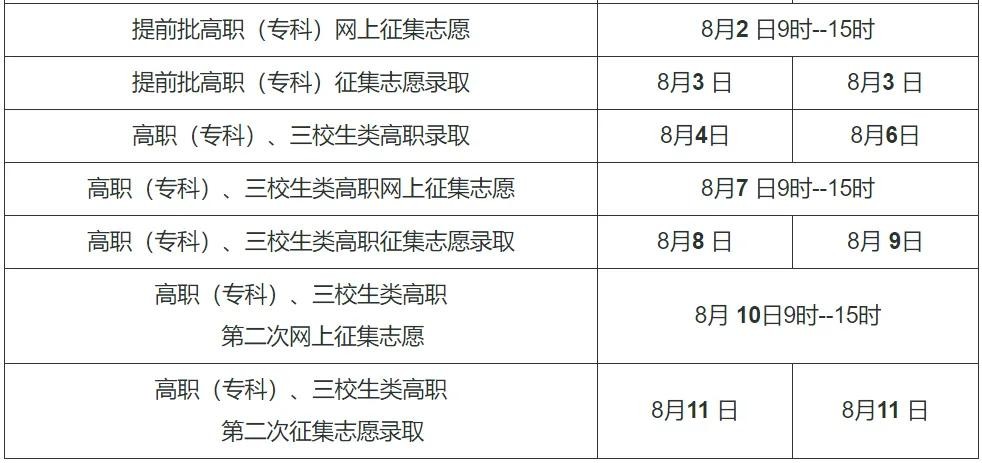 征求志愿投档 8月5日8:30