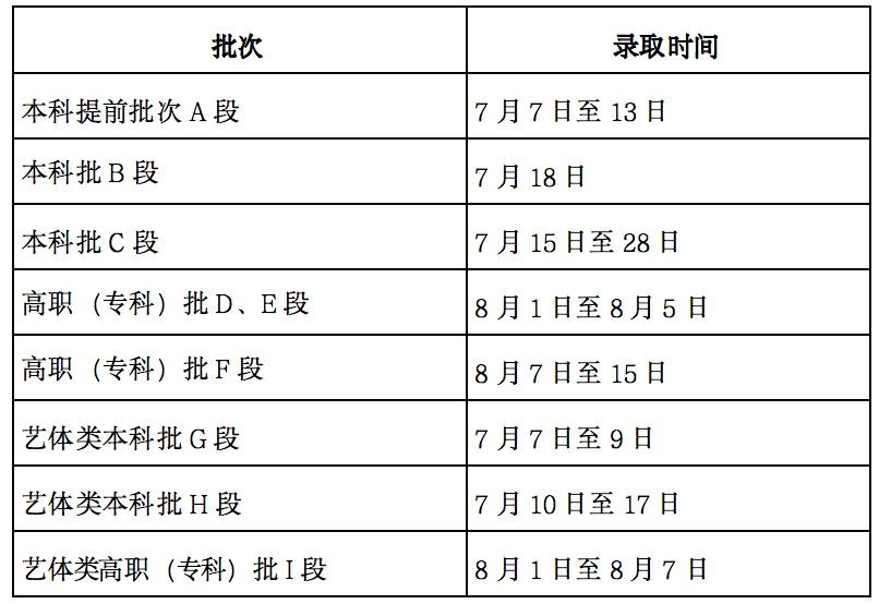 退档录检结束 7月18日10:00