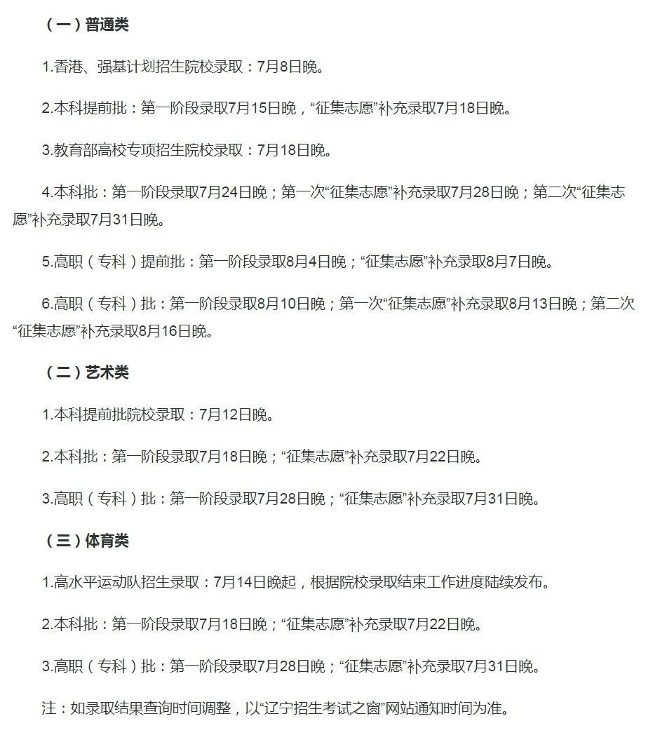 高水平运动队投档录取7月16日11:30
