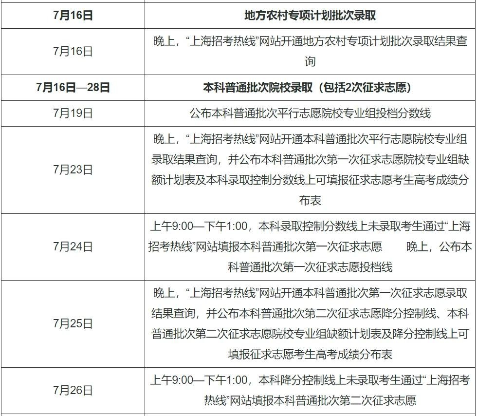 地方专项计划投档录取7月16日14:30