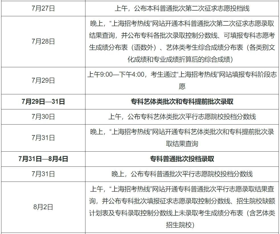 退档录检结束 7月31日16:30