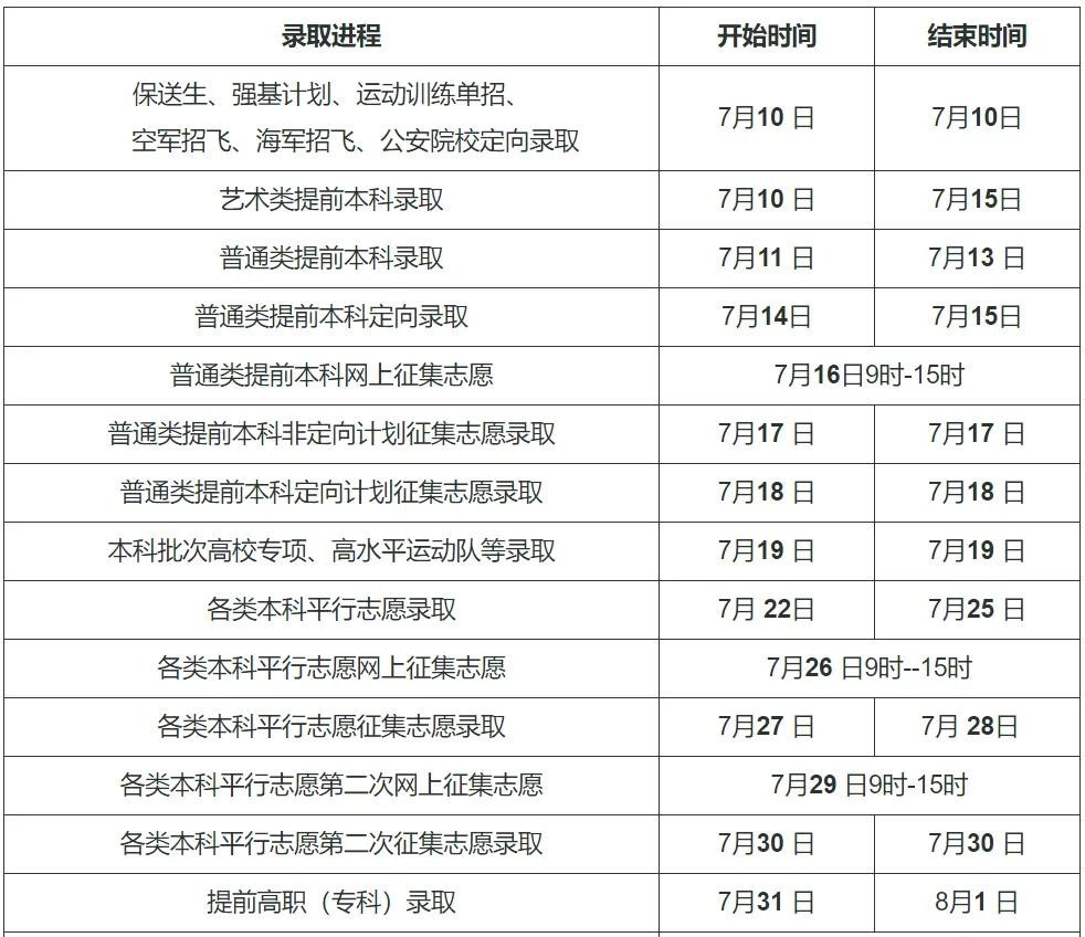 多地录取、征集时间出炉:填完志愿必须关注!