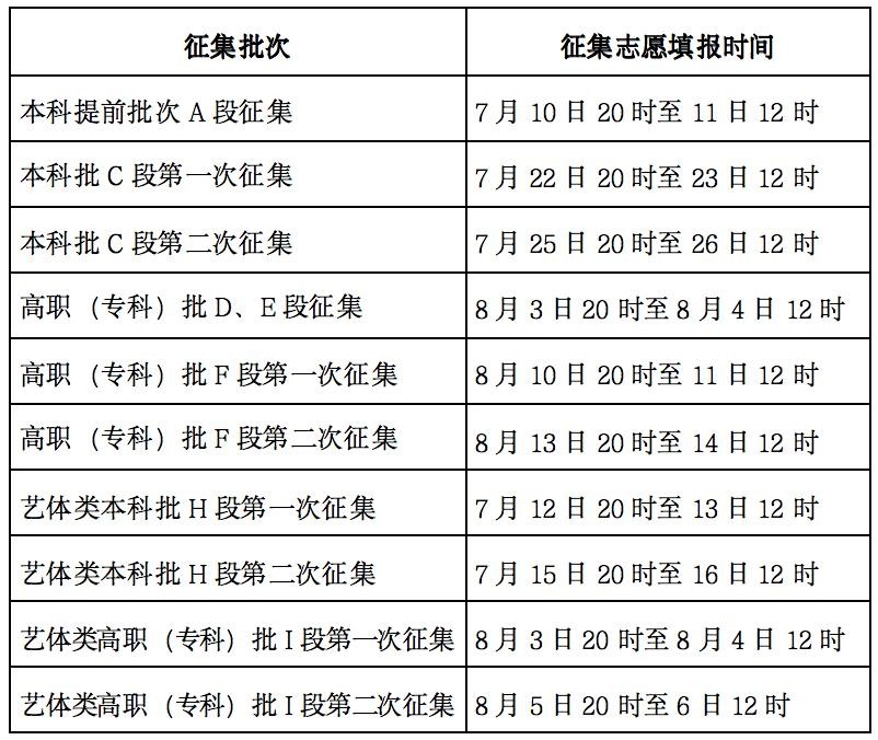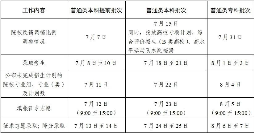 征求志愿投档 7月9日8:30