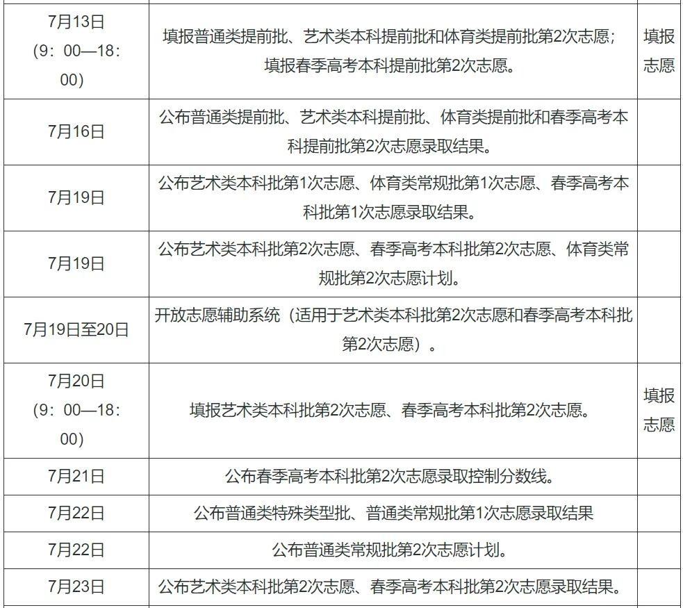 (注:上述进程安排中,所有类别征求志愿是否实施视缺额计划而定。)