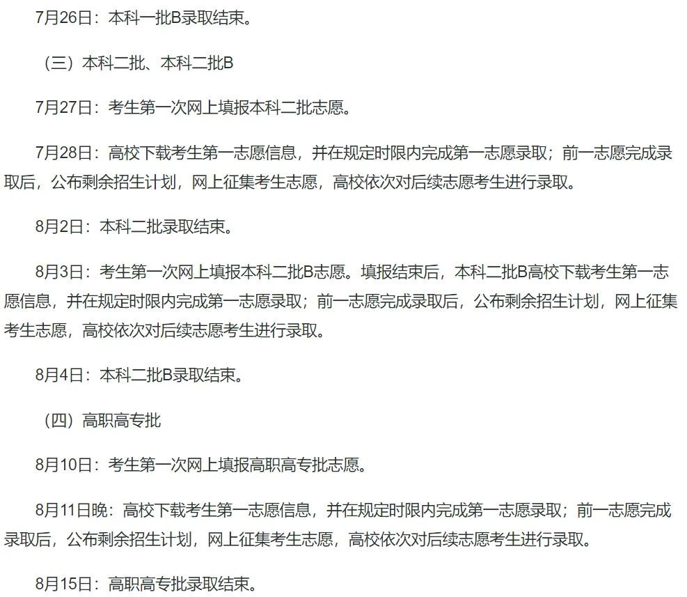 第二段志愿填报: 7月26日8:30—7月27日17:30