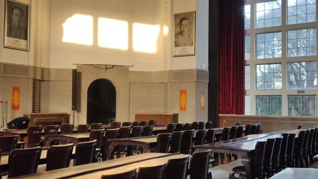 (老图书馆一楼大厅王世杰校长、王星拱校长照片)
