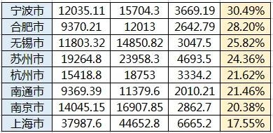 宁波、合肥和无锡排名前三位,苏州表现也很稳健。