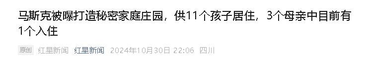 红星新闻:马斯克被曝打造秘密家庭庄园,供11个孩子居住,3个母亲中目前有1个入住