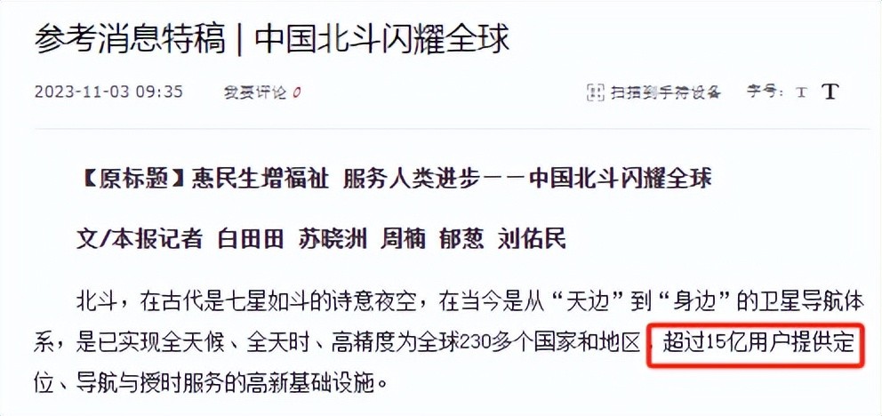 它已实现全天候、全天时、高精度为全球230多个国家和地区、超过15亿用户提供定位、导航与授时服务的高新基础设施。