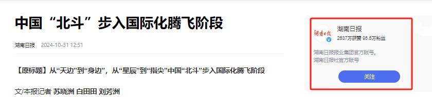 湖南日报:中国“北斗”步入国际化腾飞阶段