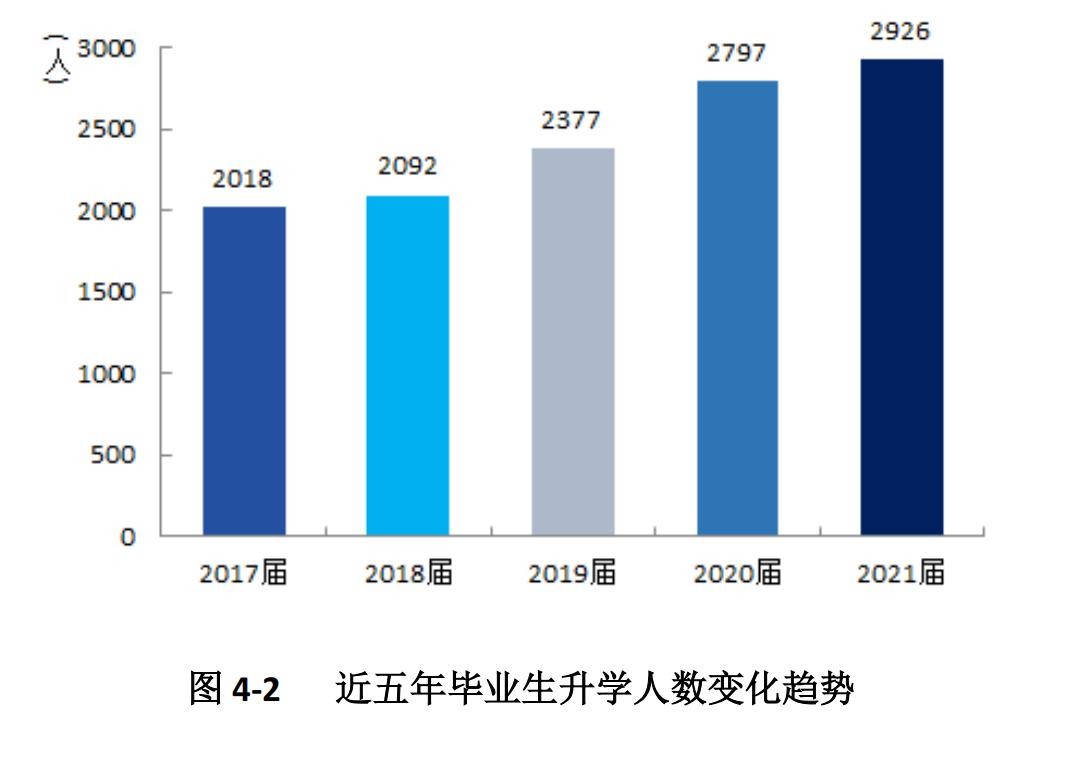 五是升学率挺高,近五年升学人数一直在增加。就业质量报告透露,四川农业大学毕业生升学人数由 2017 届的 2018 人增长到 2021 届的 2926人。2021 届毕业生中,共有 2926 人选择升学深造;其中,本科生毕业生共有 2787 人选择国内(境)外升学,升学率为 29.09%,其中普通本科生毕业生升学率达到 32.80%;研究生毕业生共有 139 人选择国内(境)外升学,升学率为 8.84%。