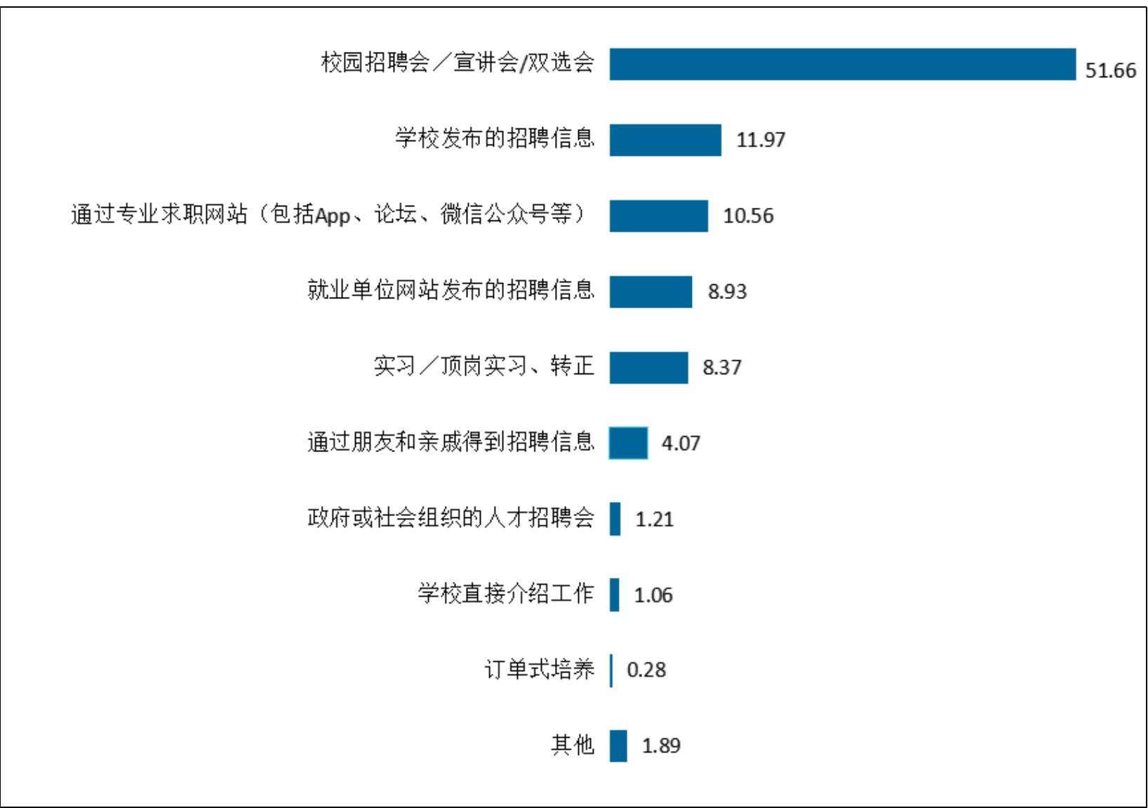 四是校招是主渠道,说明就业机会还可以。据校方组织调研数据,用人单位聘用四川农业大学毕业生的主要渠道是通过“校园招聘会/宣讲会/双选会”(51.66%)、“学校发布的招聘信息”(11.97%)、“通过专业求职网站”(10.56%)。