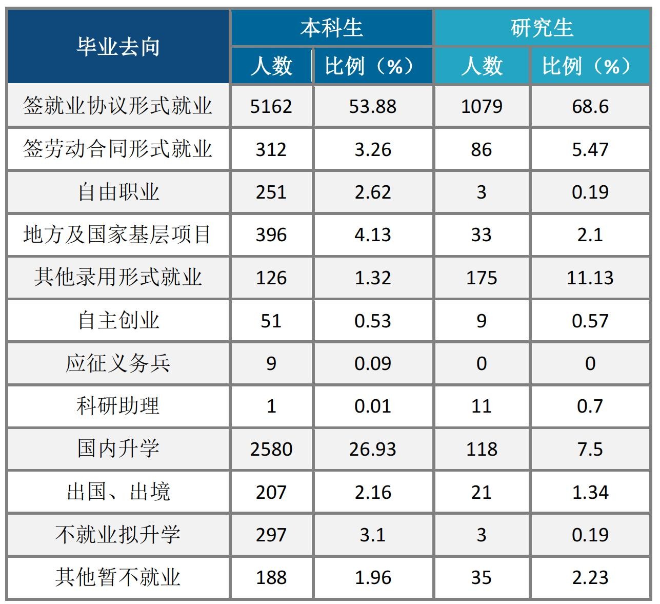 二是不管信不信,就业率挺高。截至 2021 年 8 月 31 日,四川农业大学2021 届毕业生的毕业去向落实率为 95.31%,其中,本科生的毕业去向落实率为 94.94%,研究生的毕业去向落实率为 97.58%。从毕业去向构成来看,该校2021 届本科生毕业生以“签就业协议形式就业”(53.88%)为主,“国内(境)外升学”(29.09%)次之。