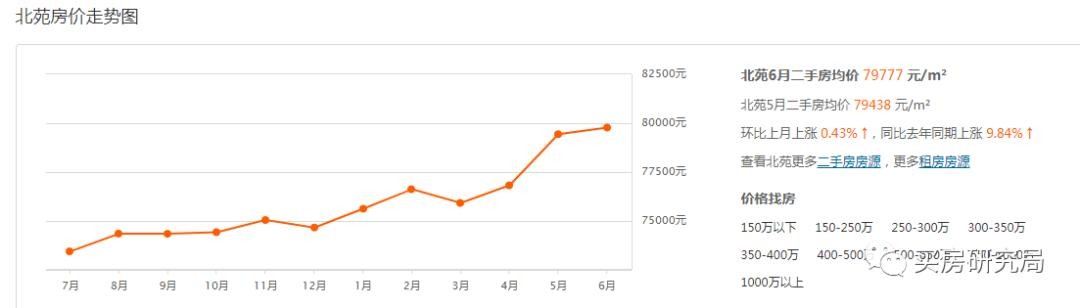 较近的北苑板块二手房价一直在上涨,2020年开盘的华贸铂金墅总价1770万/套起;