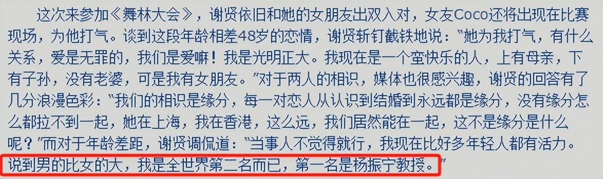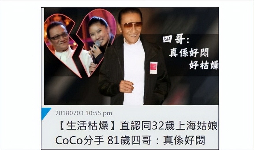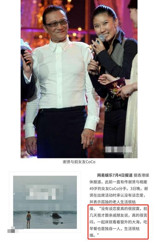 2018年,81岁的谢贤,公开承认已经和CoCo分手。