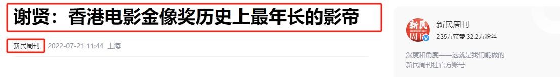 新民周刊|谢贤:香港电影金像奖历史上最年长的影帝 2022.07.21