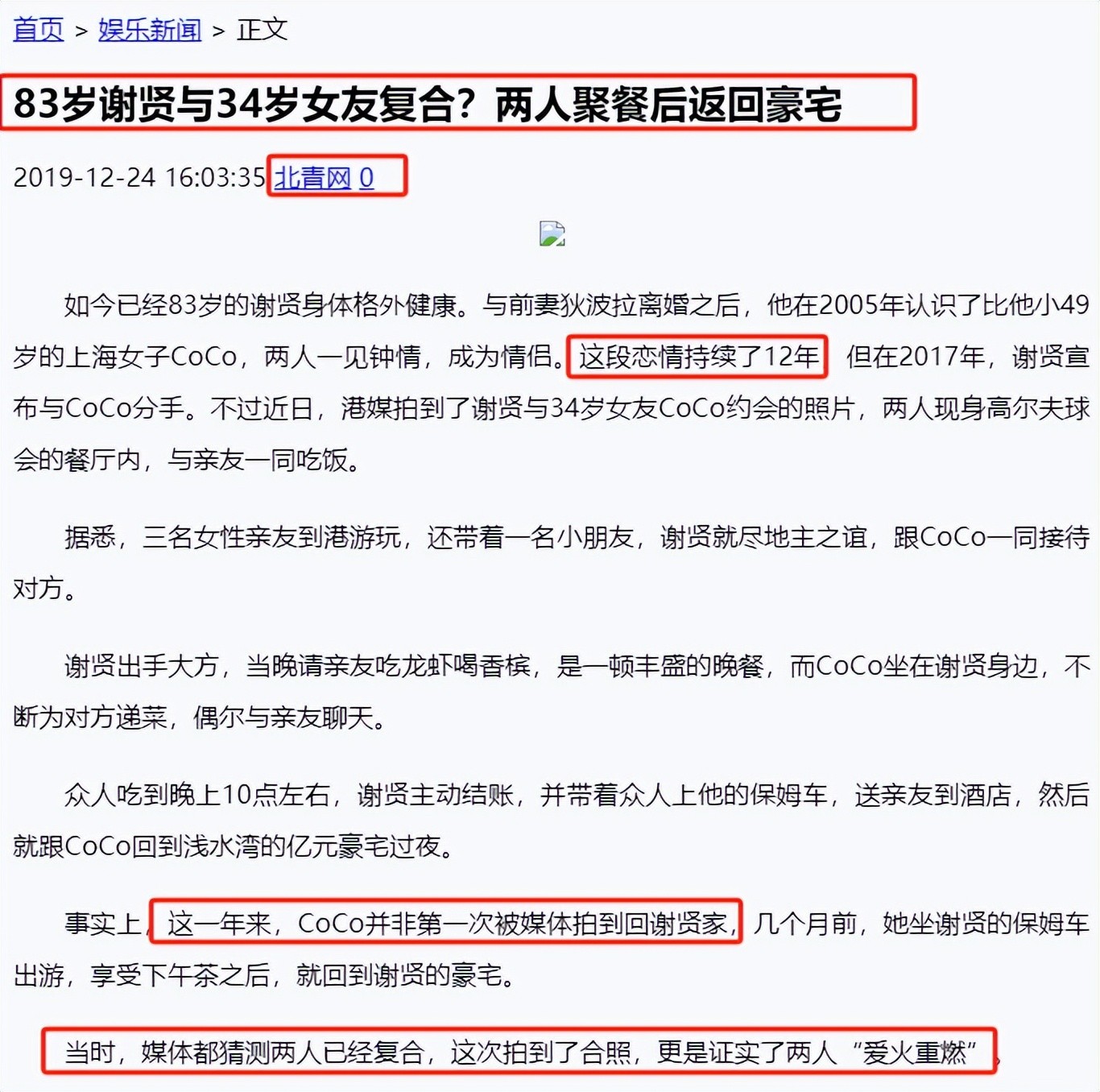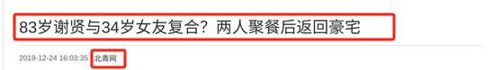 北青网|83岁谢贤与34岁女友复合?两人聚餐后返回豪宅 2019.12.24