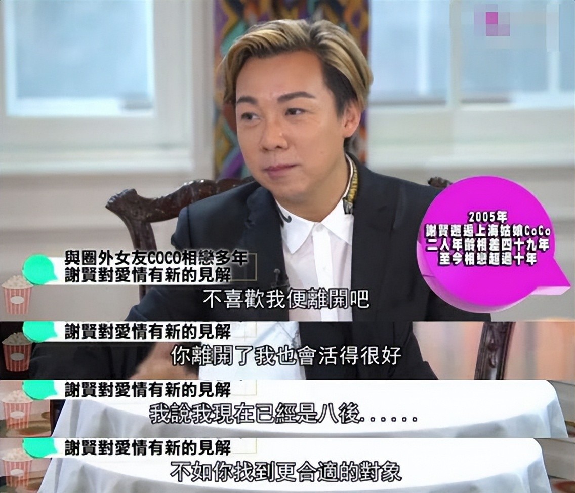其实,在两人相恋到第十年的时候,谢贤就曾对CoCo说“不喜欢我便离开吧”。