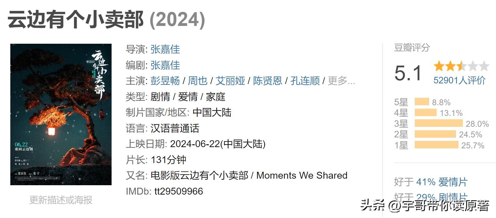 #长文创作激励计划#宇哥带你读原著,一起来看由彭昱畅,昼夜,艾丽娅等主演的热映电影《云边有个小卖部》。