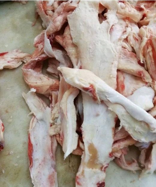 这是动物脊髓中靠前的脊髓,非常好吃,烹饪时与做牛脑一样,需要小心。