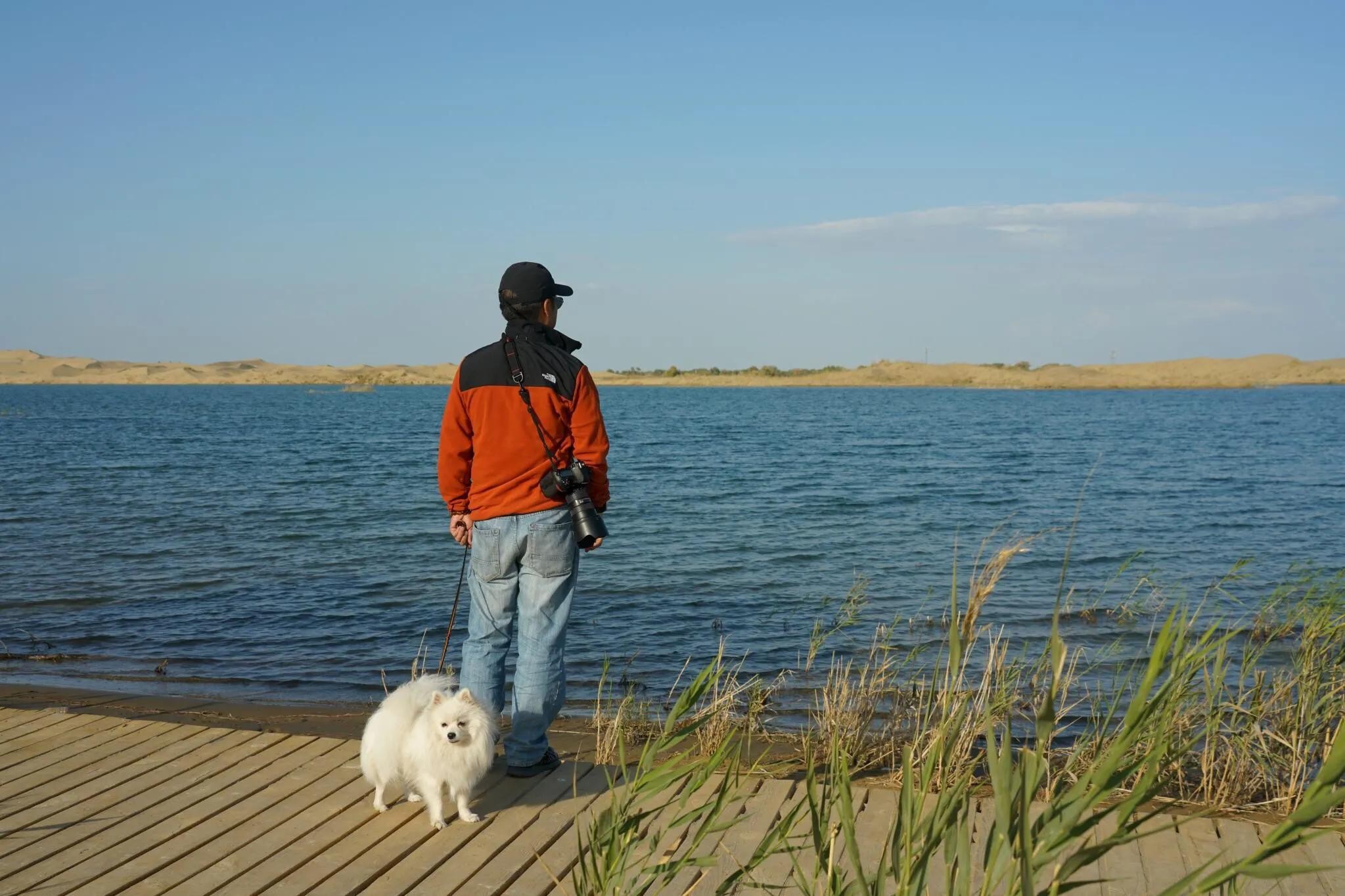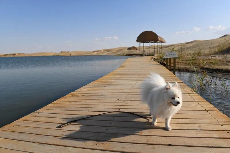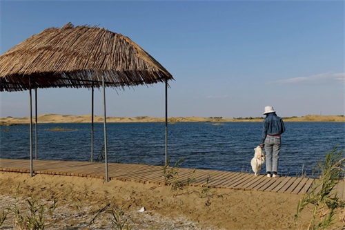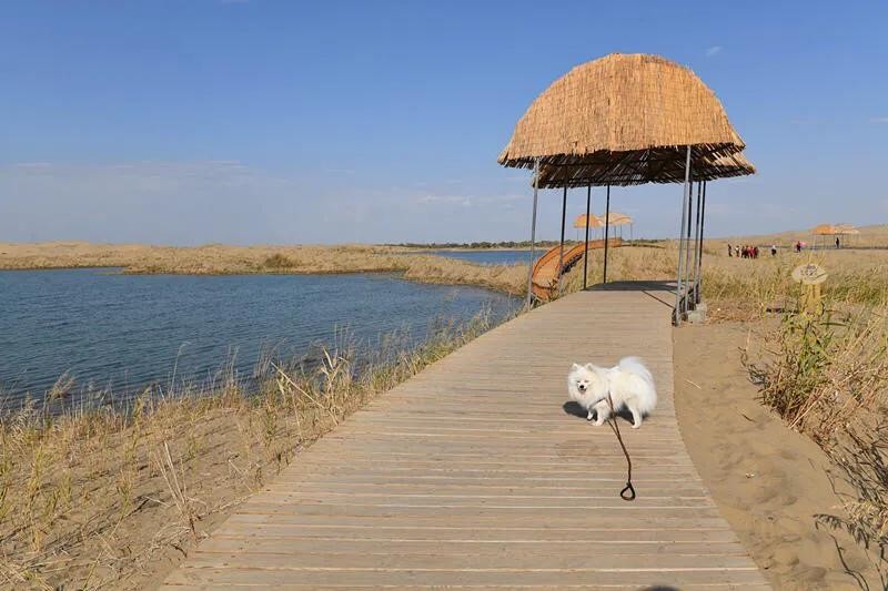 走在沙漠上面,松松的、软软的,四周空阔之极,蓝天之下,湖水之上,恍惚踩在云端。