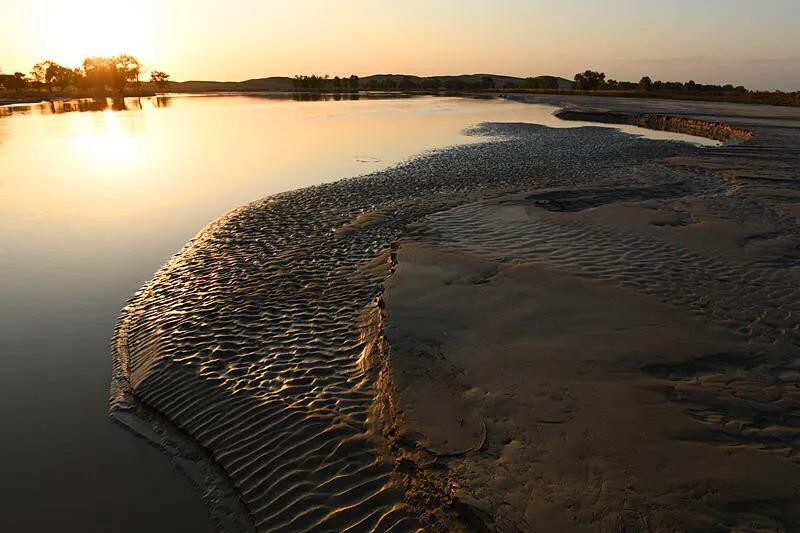 塔里木河自西向东蜿蜒于塔里木盆地北部,上游地区多为起伏不平的沙漠地带,来自于冰山的融水含沙量大,河水很不稳定,河道南北摆动,迁徙无定。因此,塔里木河被称为“无缰的野马”。
