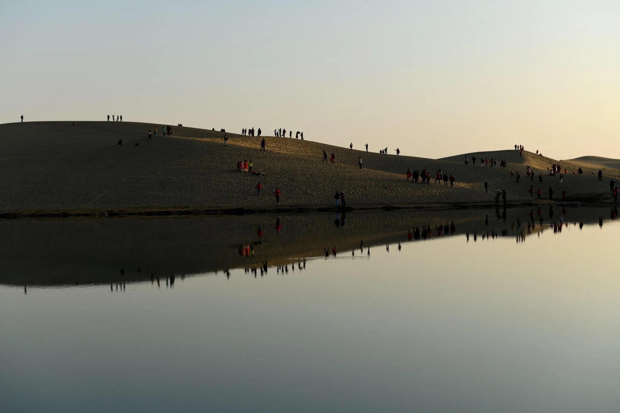 观光车的终点在神女湖边,所有游人都是这里下车,再自行游览。这里主要的景色是神女湖和它四周茫茫的沙漠,还有很多的娱乐项目,如骑骆驼、坐沙漠车,等等。
