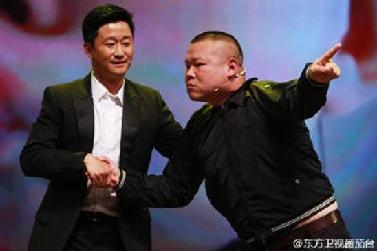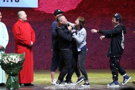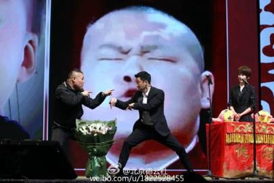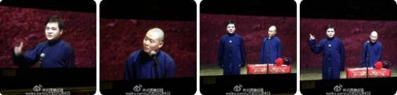 2016-4-16发文:#德云社20周年# 郭老板于老板今天有个重头戏,你们肯定都知道了,跟刘威、张国立、孟非、冯小刚说相声,目前的进展是,第一位上台的刘威现在已经被郭老板“非礼”了……非礼了……非非非非非礼了……
