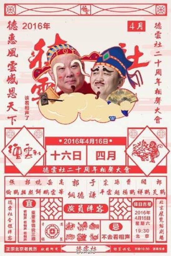 2016-4-17发文:#德云社20周年# 德惠风云,感恩天下,德云社二十正青春!