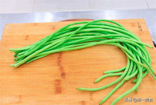 1 . 首先,我们准备一把长豆角,去除两头,切成长段