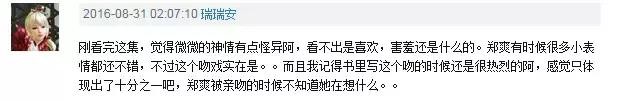 网友们对待这个吻也是褒贬不一,有的说第一次初吻的时候就是这样,脑子一片空白,呆呆木木的。有的说微微吻的不热情与原著有差别。我还跟原著粉同事一起探讨过这个问题,她表示当天首播后已经跟2个人探讨过这个吻了,这也不过发生在我早上上班的15分钟之内,可想而知到底大家对她到底有多关注了!