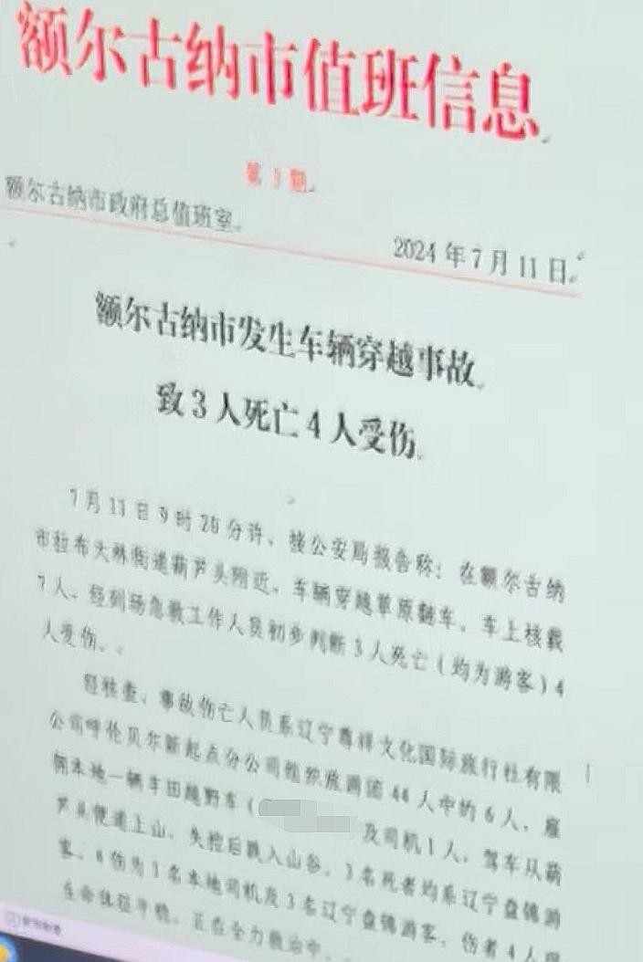 内蒙古额尔古纳发生车辆侧翻事故致3死4伤,知情人透露更多细节,当地:调查中