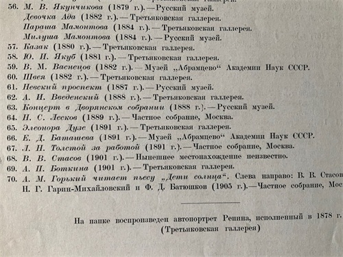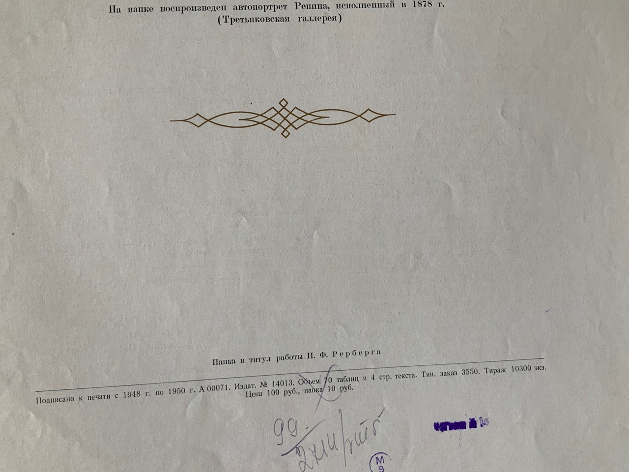 可是,他总感到这幅画似曾相识,头脑中不断地翻飞着记忆,回忆着列宾的作品,恍然记得藏书中有一本上世纪五十年代出版的列宾画集。可是数次搬家,他的藏书已分置于各处,这本画册早已杳无影踪。就在彷徨之际,突然他在卧室的书架底下瞥到《列宾画集》(莫斯科国家艺术出版社出版)。这是他在上世纪五十年代赴俄罗斯留学时购买的。奇迹发生了,当他翻到第68页时,赫然地看见一幅与拍卖品一摸一样的图片《斯塔索夫肖像》(1901年作)。