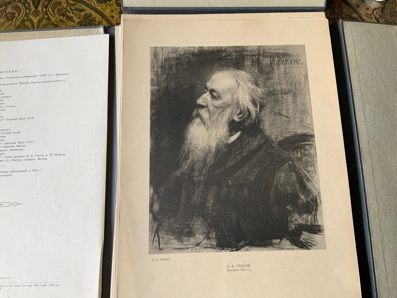 全先生顿时感到兴奋、欣慰和释然——这是列宾为俄罗斯民主主义艺术理论家、美术史家斯塔索夫所画的一幅素描肖像。而且画册上清晰地标写着:“至今不知道收藏在什么地方”的注释。也就是说,在1948年到1950年间编纂这本大型画集时,这幅画就已流失。因此俄罗斯博物馆的藏品档案和清单造册中没有该画的记录。为此,他们也曾苦苦寻找这幅素描杰作,但百余年来,寻觅无果。