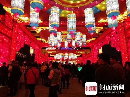 2月16日,记者走入大唐芙蓉园内,入眼的便是高耸的仿唐风格建筑,造型精美的各类彩灯沿途设立,园内人山人海,摩肩接踵,不少游客都是和家人前来观赏灯会。