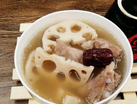 3、用电饭锅、砂锅等都可煲汤,记得一次性要加足水,如果中途实在要加水,也要记得加热水,不可直接用冷水,莲藕比较容易熟,所以不需要太早下锅,炖好的汤带着微微的甜润口感,直接喝特别鲜,当然了也可以加上点盐提味。