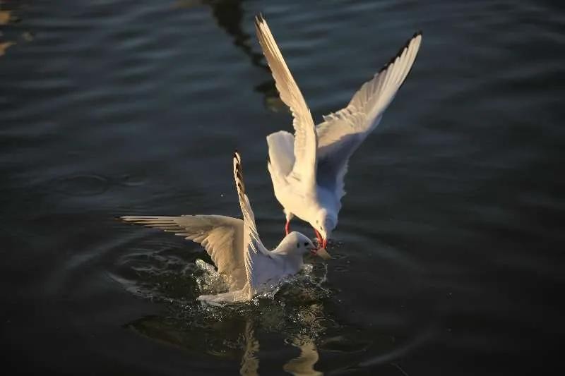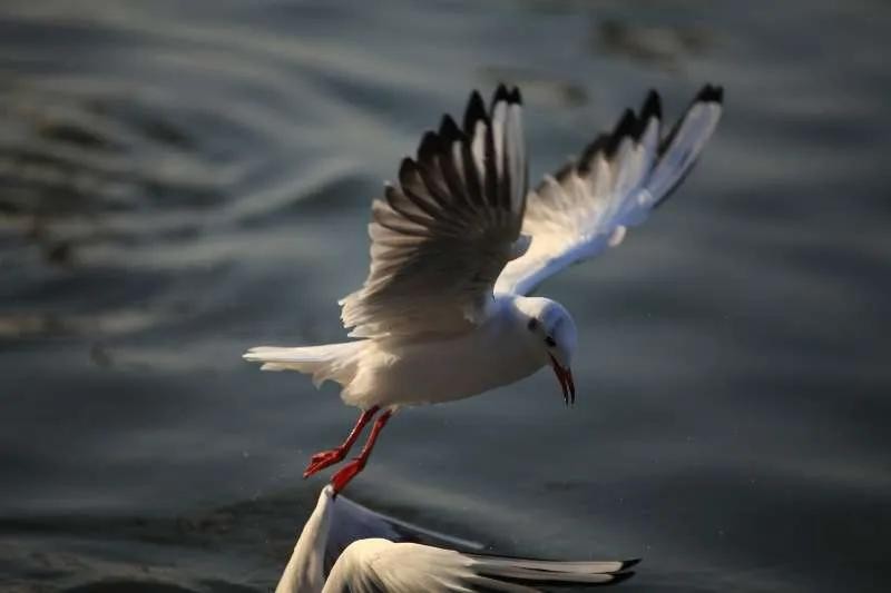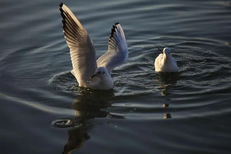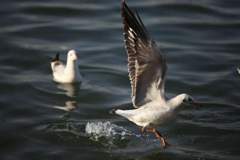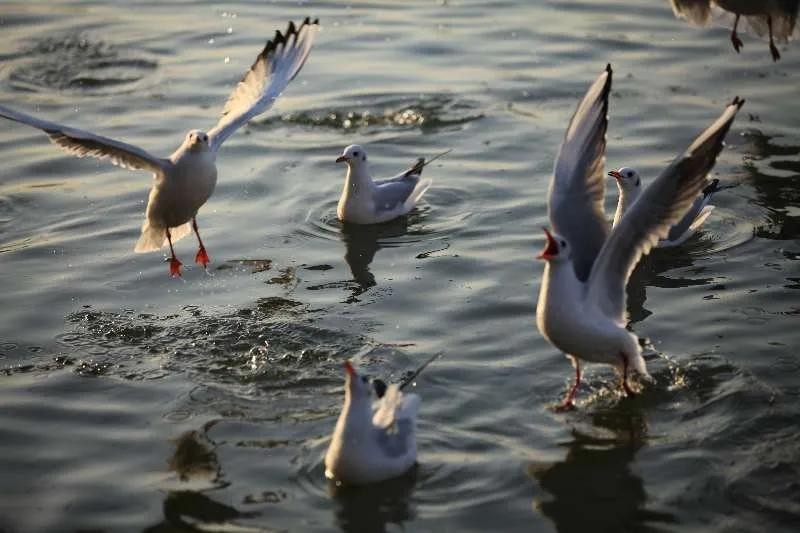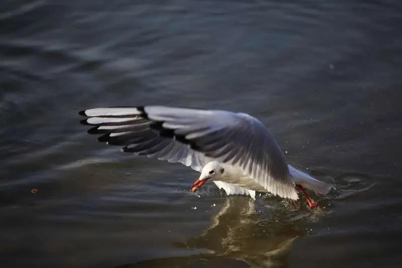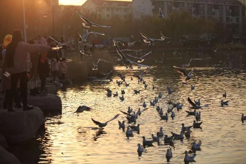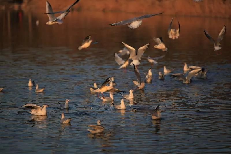 红嘴鸥俗称“水鸽子”,体形和毛色都与鸽子相似,体长约37~43公分,翼展约94~105公分,体重约225~350克,寿命最长达32年。红嘴鸥多在云南昆明过冬,夏季飞往俄罗斯西北利亚等地,每年迁徙途径银川两次,分别在3~4月份和10~11月份,每次在银川停留40~50多天。银川有200多个湖泊,几乎都可见到红嘴鸥的身影。其中以鸣翠湖、燕鸽湖、北塔湖、宝湖红嘴鸥为多可达上千个。红嘴鸥的到来,给沉闷的城市生活带来了大自然清新的气氛,人们观鸥、喂鸥、画鸥、摄鸥,给生活带来了无穷乐趣!
